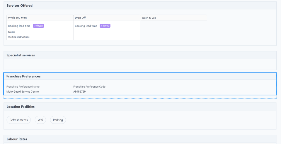 | Y | Franchise Preference Name | text | 30 | This value is retrieved from the Franchise preferences of supplier's rate card. ![]() | N |